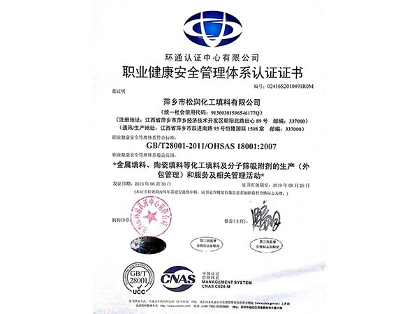 職業健康安全管理體系認證證書